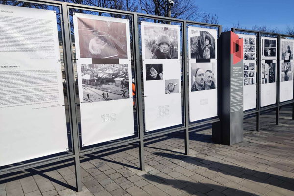 The works come from private collections, including the anonymous artist's Walled Off Hotel in Bethlehem and Ukrposhta, the Ukrainian national postal company.