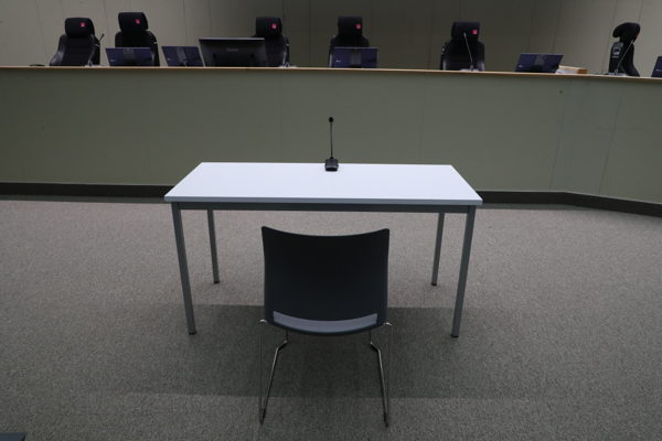 An empty courtroom at the Justice Palace in Brussels, Wednesday 21 June 2023. © BELGA PHOTO HATIM KAGHAT