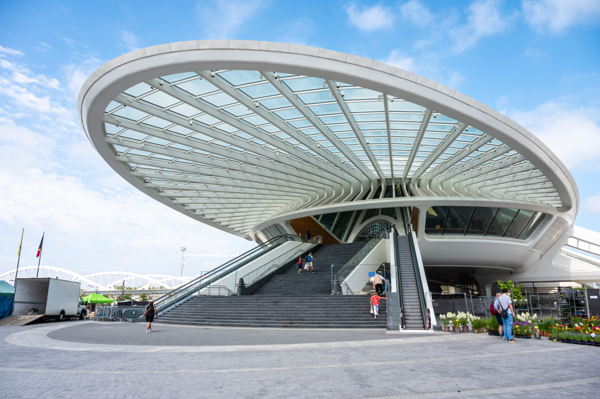 Brussels North Station, located in Schaerbeek, was built between 1938 and 1956. The modernist complex, characterised by cubist volumes, strict symmetry and vertical façade lines, was designed by architects Paul and Jacques Saintenoy and Jean Hendrickx-Van den Bosch.