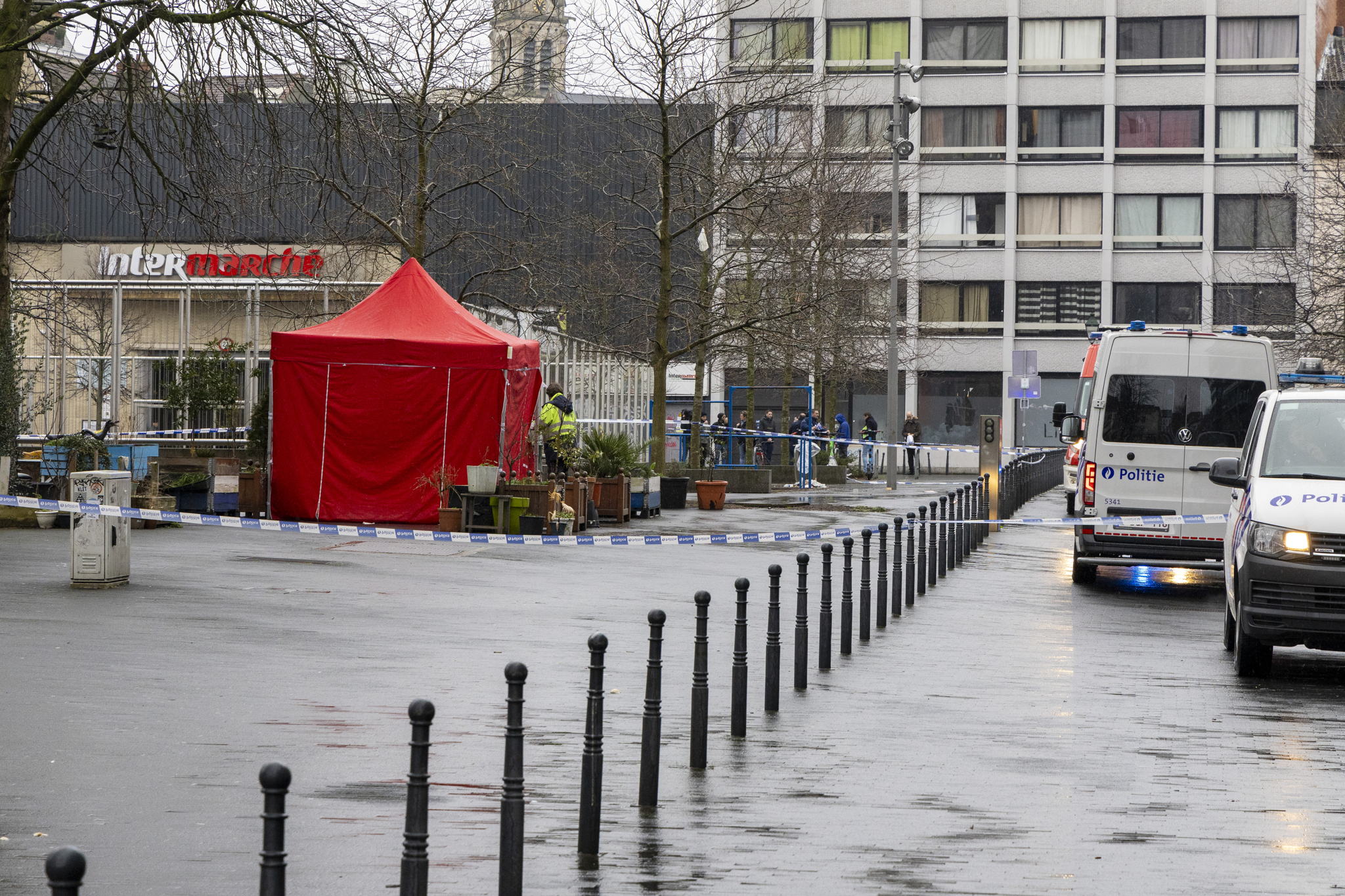 Square Jacque Franck in Saint-Gilles, Brussels, where a person was shot and killed on 14 February © BELGA PHOTO NICOLAS MAETERLINCK
