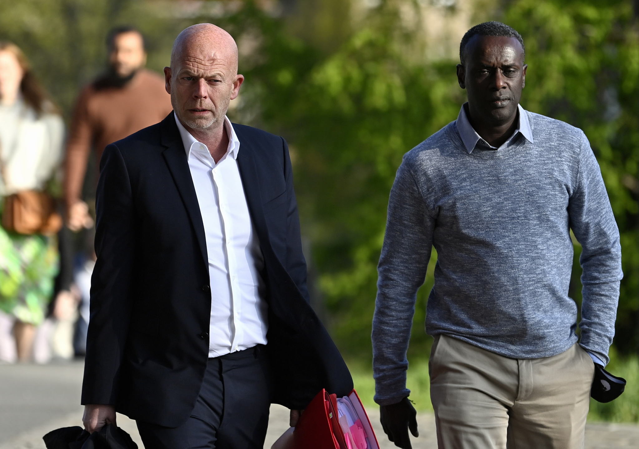 #FlandersNewsService | Lawyer Sven Mary and Sanda's father Ousmane Dia talk to the press following the sentencing © BELGA PHOTO DIRK WAEM