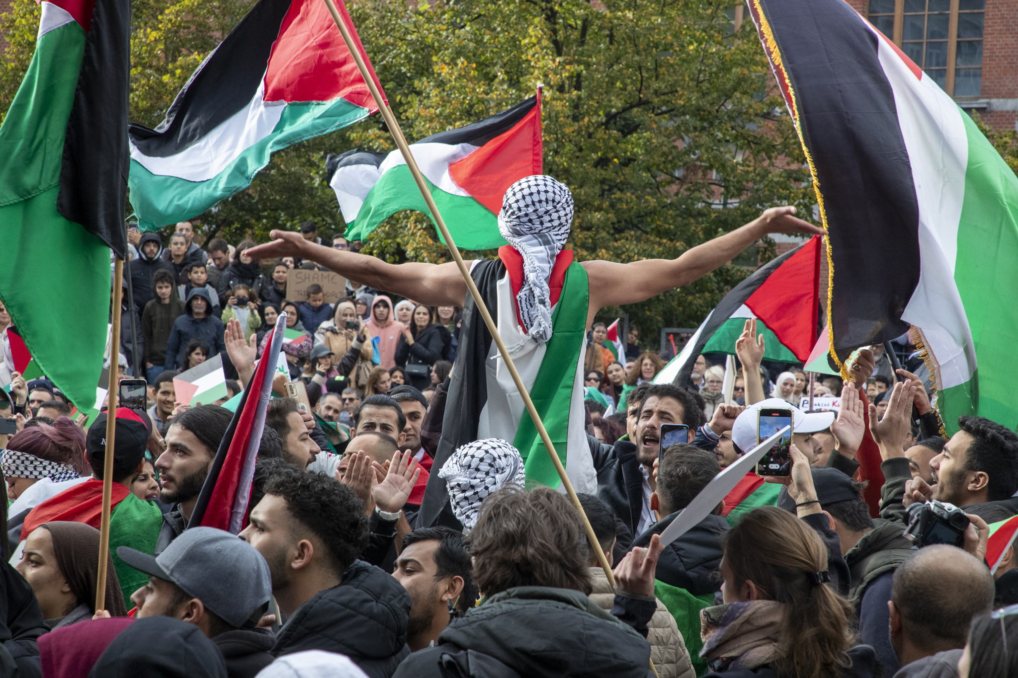 "Since the Hamas terrorist attack on Israel and the backlash, there has been a sombre atmosphere in Brussels. When a mayor tolerates an extremist demonstration where hate is openly preached, the door is opened," argues Brussels N-VA MP Mathias Vanden Borre, who shared the pictures via X on Tuesday morning. He is referring to the demonstration in the Place Bethlehem in Saint-Gilles on Sunday afternoon.