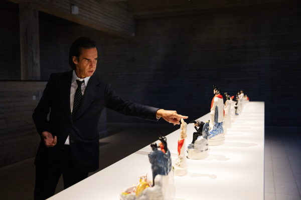 While he is best known for his music, Cave's original trajectory was as a painting student at an Australian university. For his first exposition in Belgium, he created a series of 17 glazed ceramic figurines that portray a human look at the life of the Devil. Cave's lifelong interest in religion which he approaches with a mix of scepticism and belief, inspired this deeply personal project.