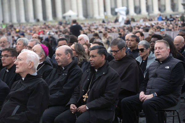 The faithful began gathering in St Peter’s Square in Vatican City in the early morning. The first attendees were admitted to the square shortly after 7.30, ahead of a small procession scheduled for 9.00, during which the Pope’s body was transferred from Casa Santa Marta to the basilica.