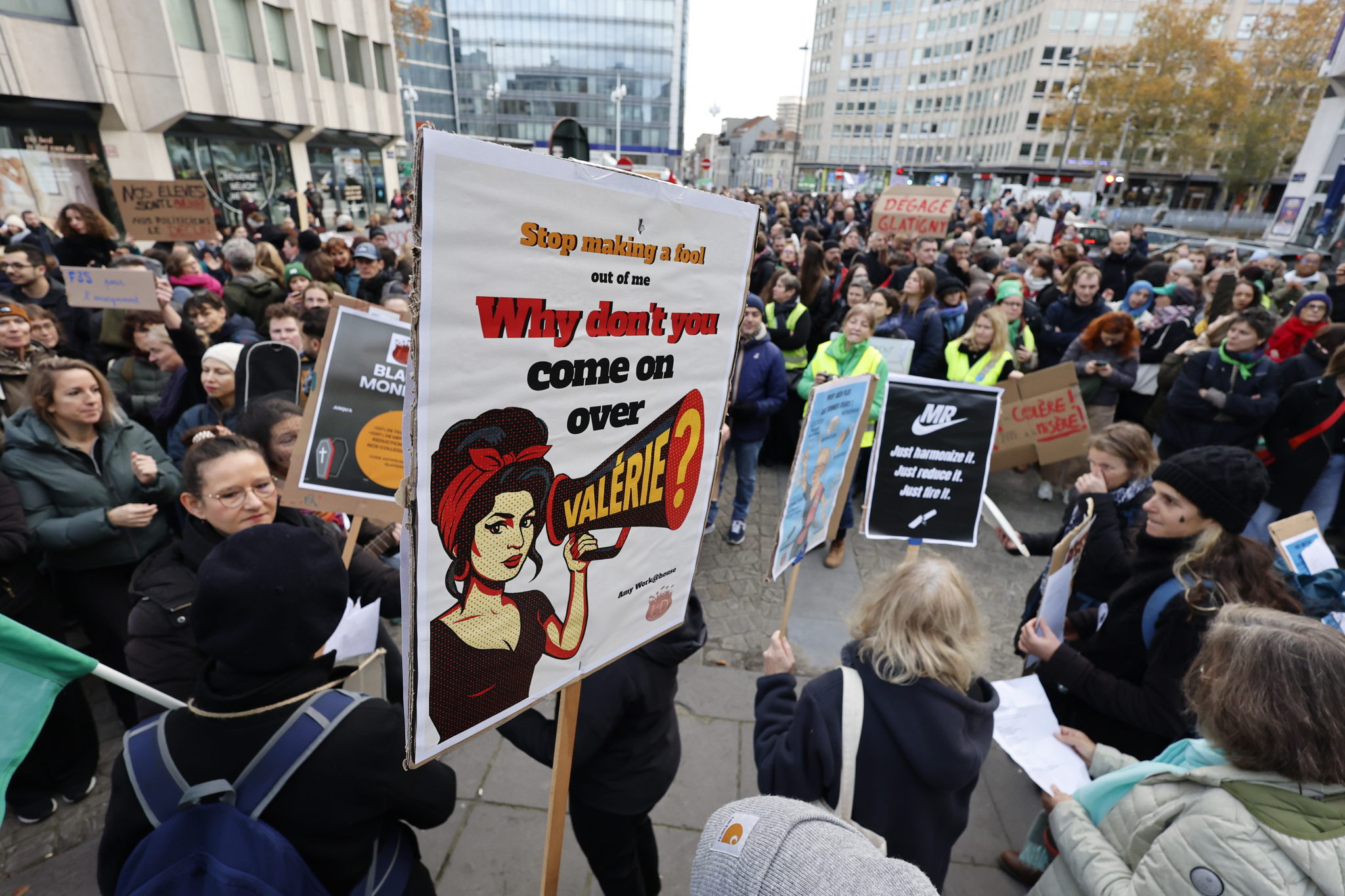 Teachers protest against planned cuts by the Wallonia-Brussels Federation government in Brussels on 10 November © BELGA PHOTO NICOLAS MAETERLINCK